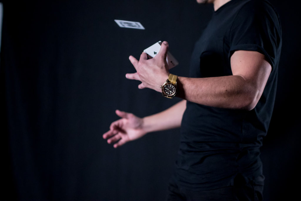 Me voyez-vous glisser doucement vers une comparaison ? Avec l’horlogerie par exemple. L’horloger assemble une pièce avec minutie et patience. Mais cette fluidité n’est pas d’ordre divin. Des années d’entrainement et d’école. Avant de pouvoir enfin voir le spiral se contracter. Il s’agit aussi d’un métier de patience ou la vie prend un nouveau souffle, et où l’architecte qui travaille derrière un tour ou une montre contemple d’un oeil fier et bienveillant le fruit de son dur labeur. C’est aussi l’oeil bienveillant des spectateurs que nous sommes, qu’il s’agisse d’un tour de magie, ou de la présentation d’une montre, qui participe à la beauté de ces réalisations.