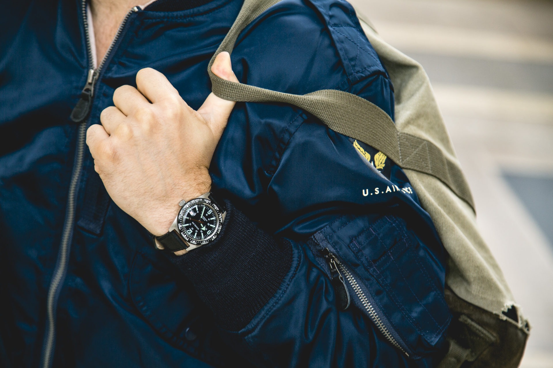 Le modèle présenté ici, est le plus proche de la montre portée par Armstrong durant ses phases d’entrainement : la Douglas Skindiver Worldtimer Professional.
