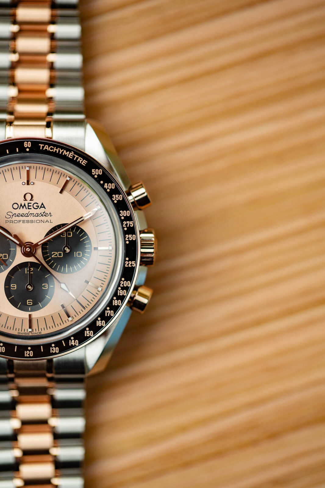 OMEGA SPEEDMASTER, ENTRE OR ET ACIER La Lune, précieuse