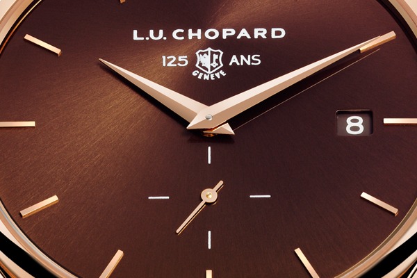 Afin de célébrer les 125 ans du Poinçon de Genève, Chopard dévoile une édition limitée de son modèle L.U.C XPS agrémentée d’un guichet de date. Ce garde-temps en or rose 18 ct aux lignes épurées et dynamiques présente un cadran brun « chocolat » satiné soleil et orné du logo du Poinçon de Genève à 12 heures. Pour l’animer, les horlogers de Chopard Manufacture, ont fait appel au calibre maison L.U.C 96.01-L. Un parti-pris qui leur a permis l’exploit de loger dans un boîtier extra-plat un mouvement automatique doté de deux barillets pour une réserve de marche de 65 heures et qui propose les fonctions heures et minutes au centre ainsi que petite seconde à 6h et date à 3h.