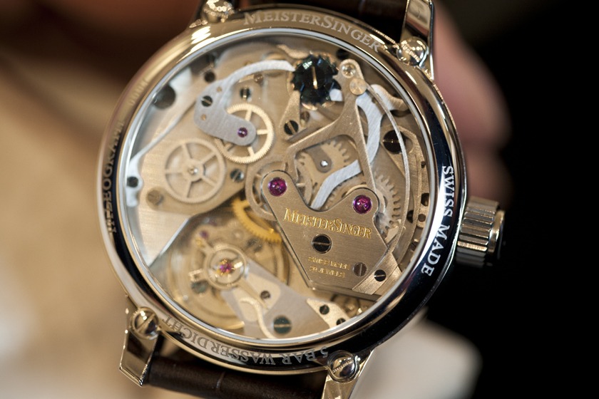 Depuis 2001, MeisterSinger impose une vision de la lecture de l’heure simplifiée par mono-aiguille, renouant avec les premières origines de la montre. En en faisant sa marque de fabrique, MeisterSinger offre à ses clients une lecture de l’heure singulière leur permettant non pas de gagner du temps, mais plutôt de prendre leur temps… (un système à mono-aiguille réduit la précision de lecture à plus ou moins 5min)