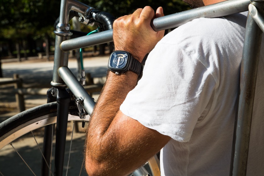 Plus agressive mais tout aussi agréable à porter que le modèle M1, la SevenFriday M2 affiche un cadran inspiré par le design des anciens outils de mesure de puissance tels que les ampèremètres. Ce dernier est réalisé avec une juxtaposition de six différentes couches composées de 10 éléments différents.