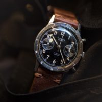 Les caractéristiques du cahier des charges que nous aimons tant, citées plus haut, ne manquent évidemment pas à l’appel et c’est un mouvement Valjoux 222 qui lui, assure la fonction Flyback requise. La construction de la boîte en trois parties est complétée par un plexi bombé : On aime. Le tritium des index et des aiguilles a vieilli en une belle teinte vanille foncée et les échelles des sous-compteurs de type « railroad » terminent un tableau ultra lisible et fonctionnel au charme d’antan. Le type de pièce dont je ne me lasserais sûrement pas. Authentique, iconique, robuste et fonctionnel… Seriously, what else ?