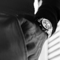 Une pièce qui nous émeut par sa provenance et son esthétique. Le chronographe sans épaulements ni poussoirs vissés à la modeste ouverture de 36mm et au bracelet riveté de 19mm fonctionne toujours aussi bien une fois au poignet. Présence, confort et légèreté pour un chronographe purement fonctionnel porté par Bond himself.