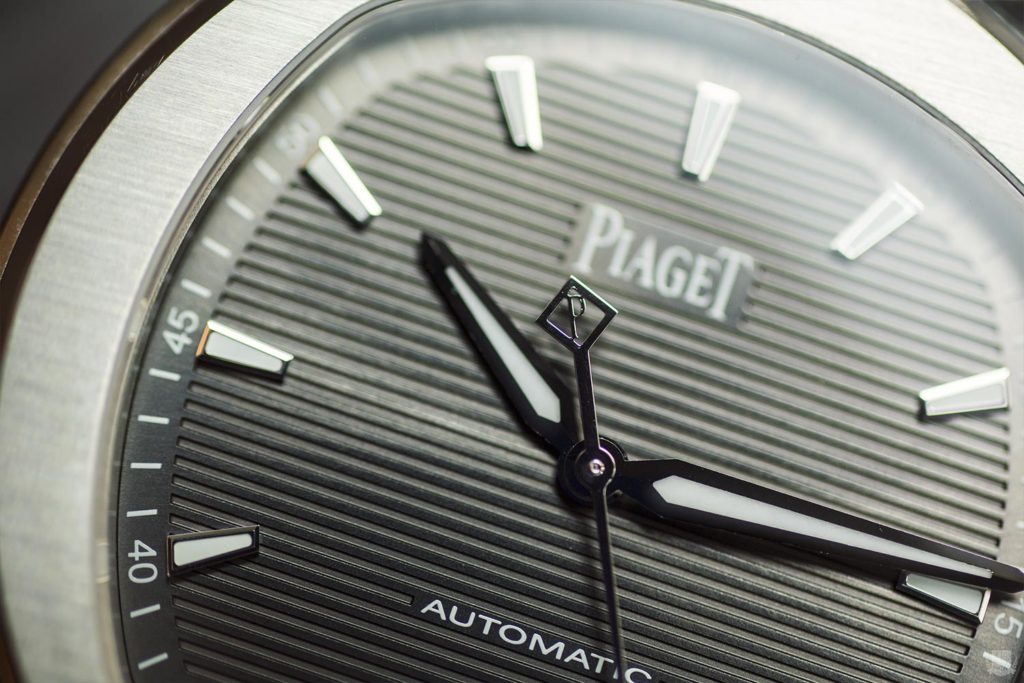 C’est certain, il est impossible de ne pas penser au design du fabuleux Gerald Genta (petit rappel ici) et de son travail réalisé sur la Patek Philippe Nautilus en 1974 en appréciant les lignes de cette Piaget Polo S.