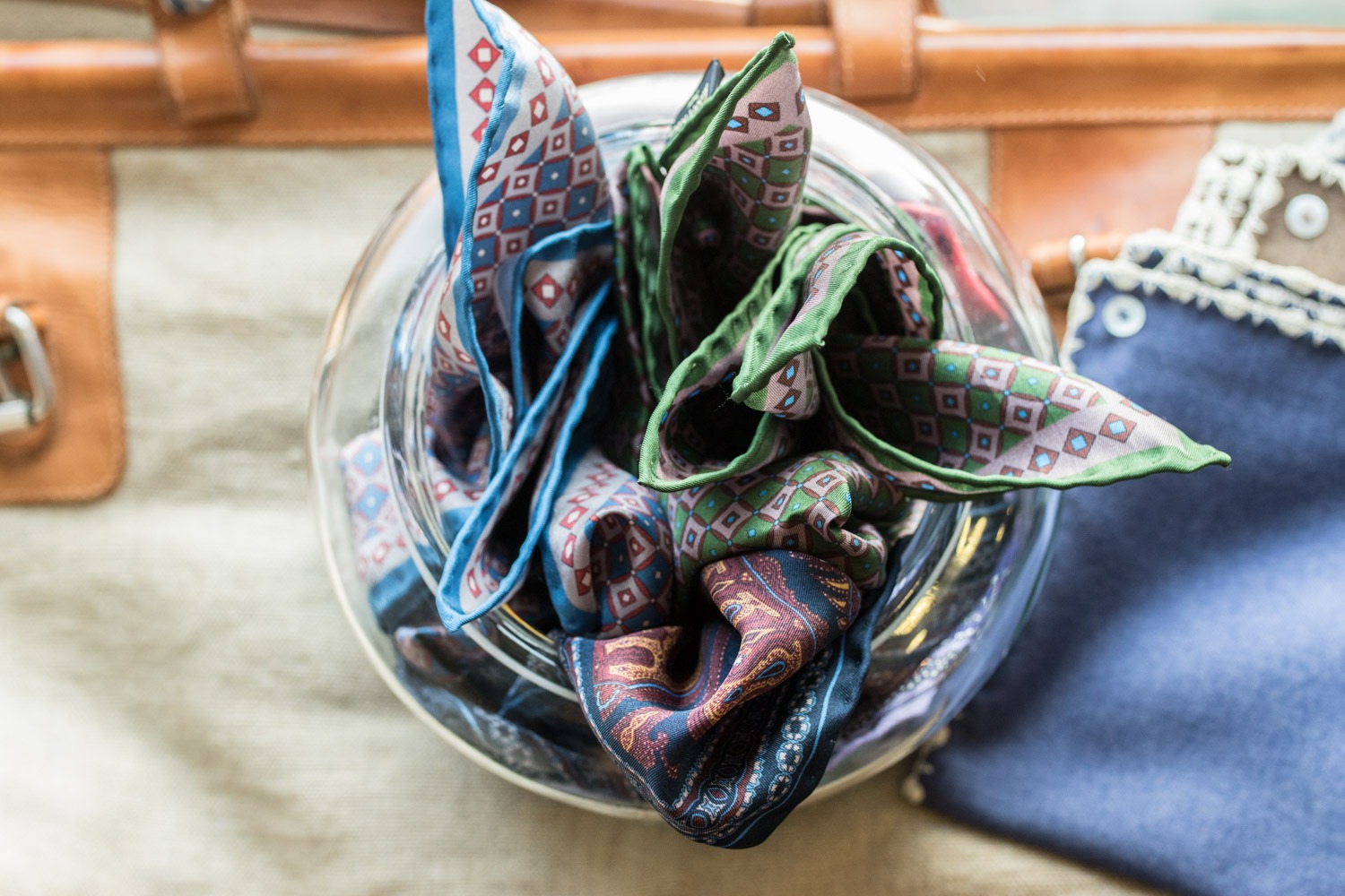Vous aviez pu également faire connaissance avec la marque Robert Kerr. Son fondateur a hérité de l’amour des matières nobles et du style intemporel de son grand-père maître tailleur à Londres avant de se lancer dans une belle aventure. Une quête d’exigence pour proposer des étoles, pochettes et autres cravates en soie, parfois ancienne, réalisées à la main en France avec les mêmes gestes d’antan. Vous aurez aussi l’occasion de toucher son nouveau chapeau Montecristi fait en France. Pour vous rendre compte du travail.