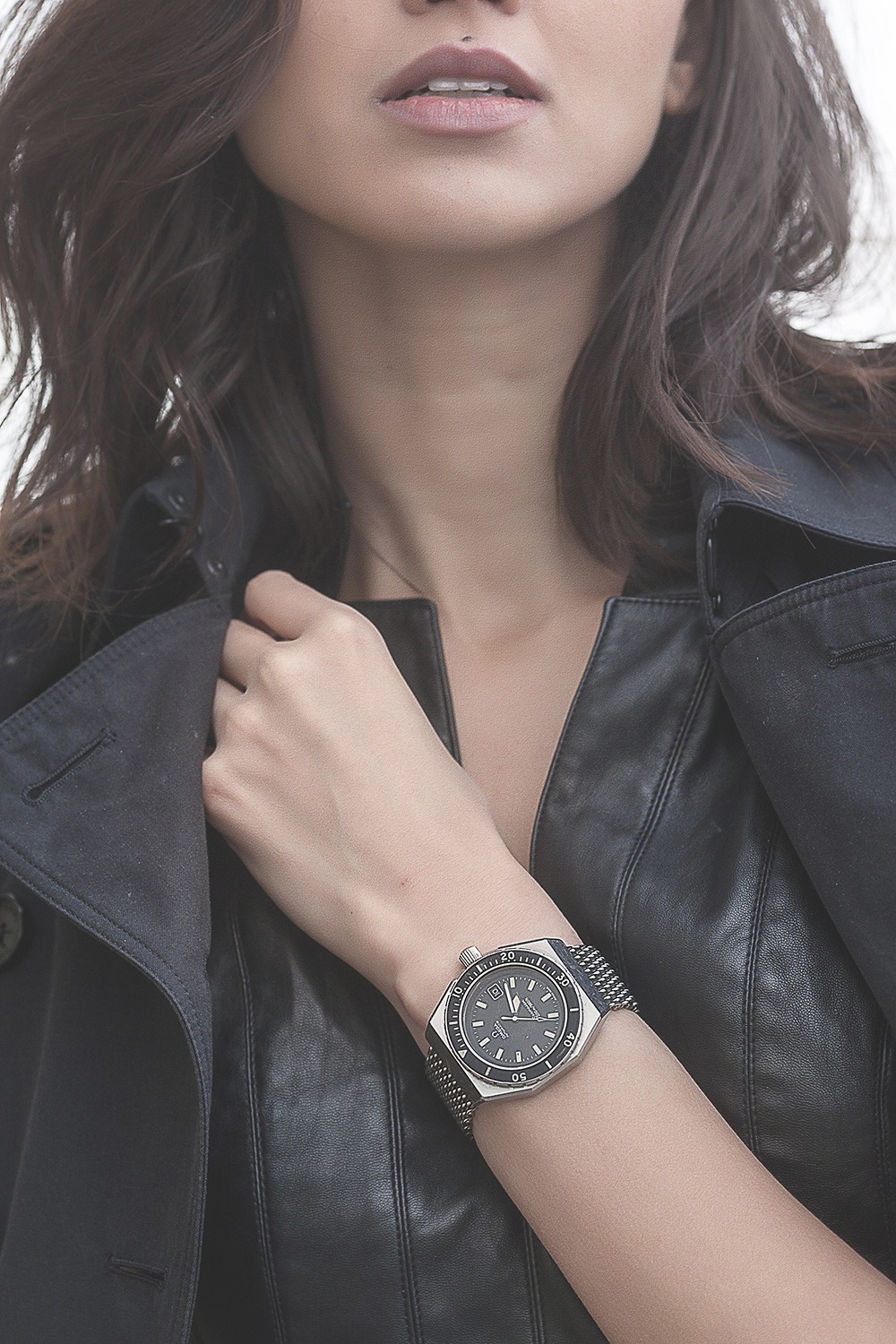 Qui a dit qu’une vraie plongeuse ne s’adapterait pas au poignet plus fin d’une femme ? Personne. C’est pourquoi une bonne Omega Seamaster 200 « Shom » avec bracelet en maille milanaise passe tout à fait ici. C’est un peu engagé, certes, mais loin de ne pas être à sa place.