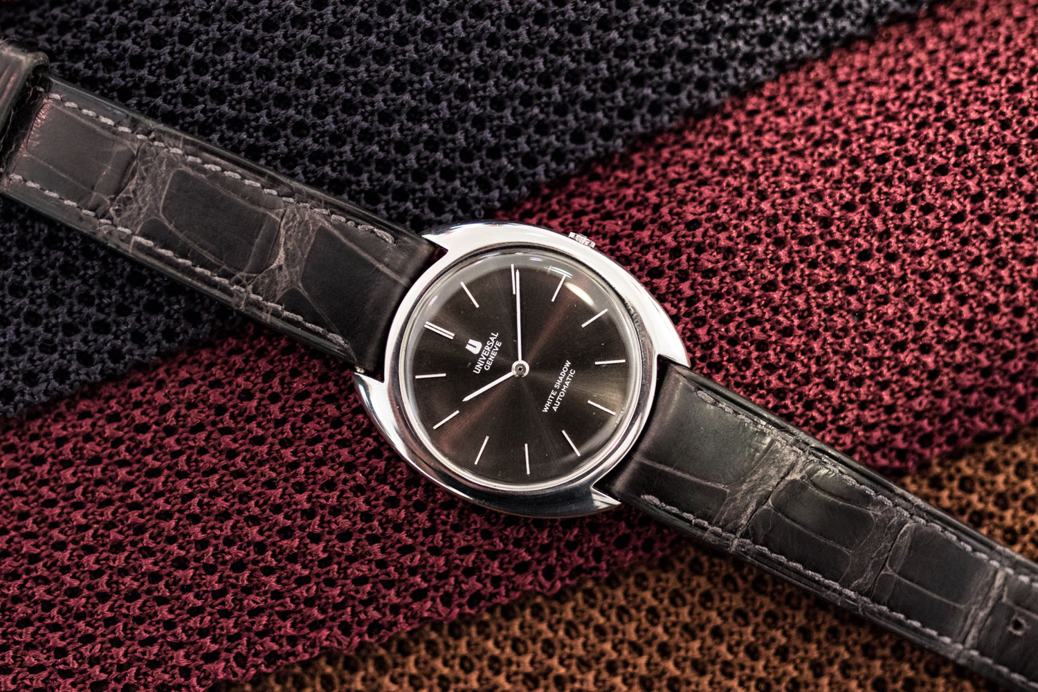 Je possède aussi une Glycine Airman de la guerre du Viet Nam, une Polerouter Date, ainsi qu’une White Shadow, une montre extra-plate d’Universal Genève avec un micro-rotor de 2,5mm.