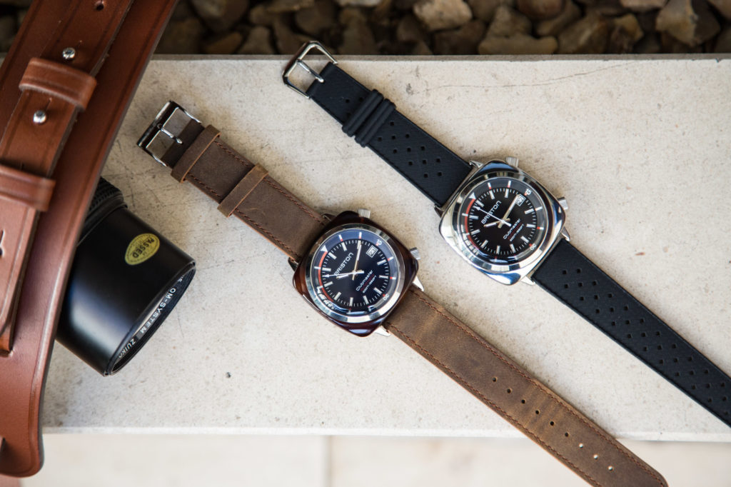 Au niveau des bracelets, toujours autant de choix. Ils s’accordent aux cadrans, et vous pourrez y glisser un NATO, un bracelet en cuir ou en caoutchouc. Préférence pour le caoutchouc en toute situation, pour passer de l’eau au sable, et même à la table d’un restaurant. Chemise en lin au menu.