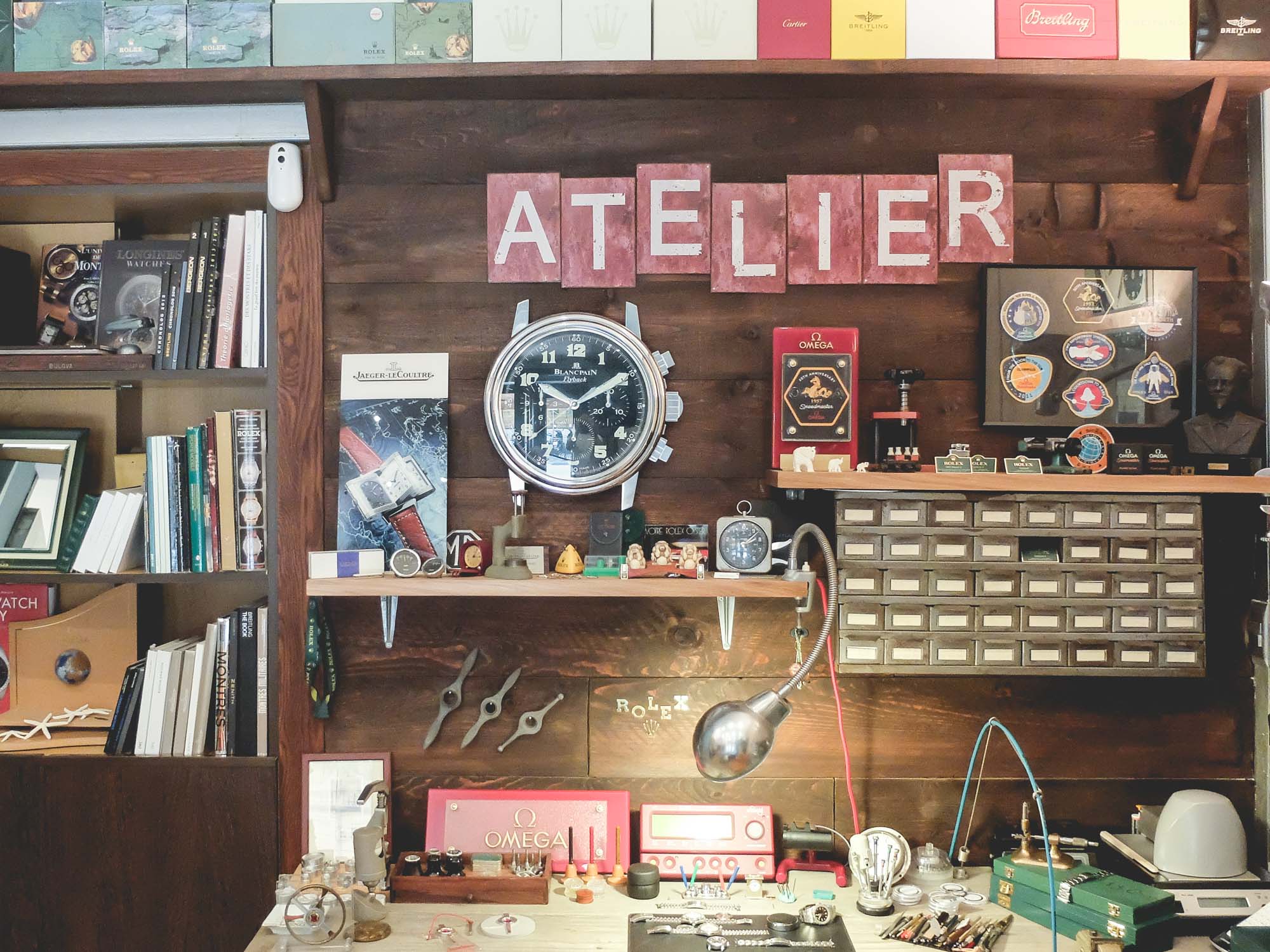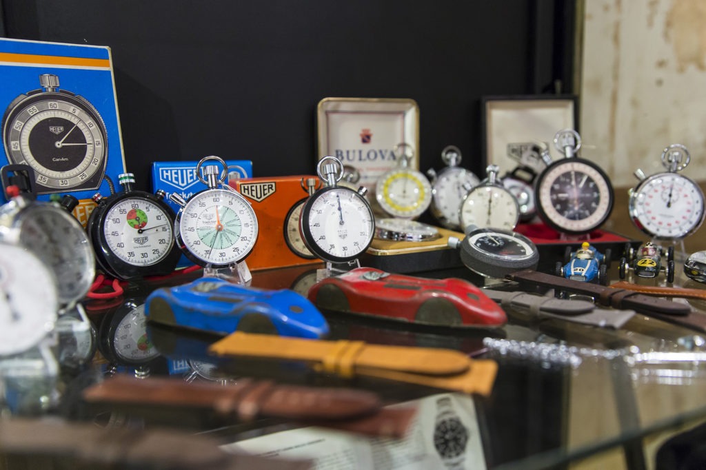 2009 sonne l’heure d’une nouvelle aventure, à Cannes cette fois. Man vs Time est créé. Il y fait à la fois de l’achat et de la vente de montres anciennes et contemporaines, mais il y exerce aussi son coeur de métier, en tant qu’horloger. On trouve un grand nombre de pièces très diverses dans sa boutique, et quelques ‘corners’ de passionné, comme cet espace réservé exclusivement à des vieux chronomètre de course, les Heuer étant ses préférés.