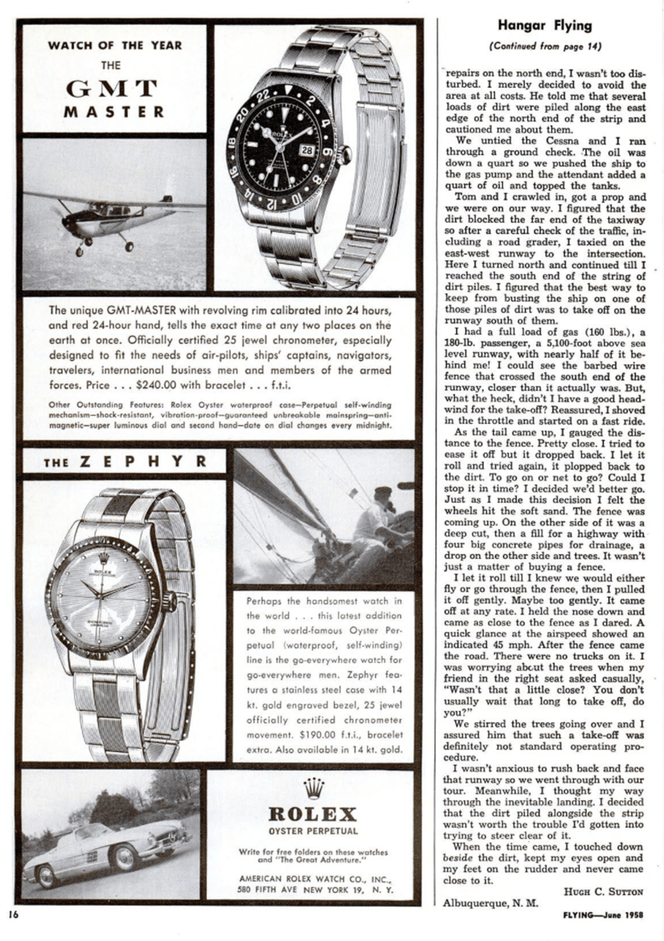 C’est d’ailleurs dans des publicités d’époque que l’on peut lire que la compagnie en a fait la demande. Rolex mentionne même une autre compagnie aérienne, mais en tait le nom. Étrange, je le conçois.