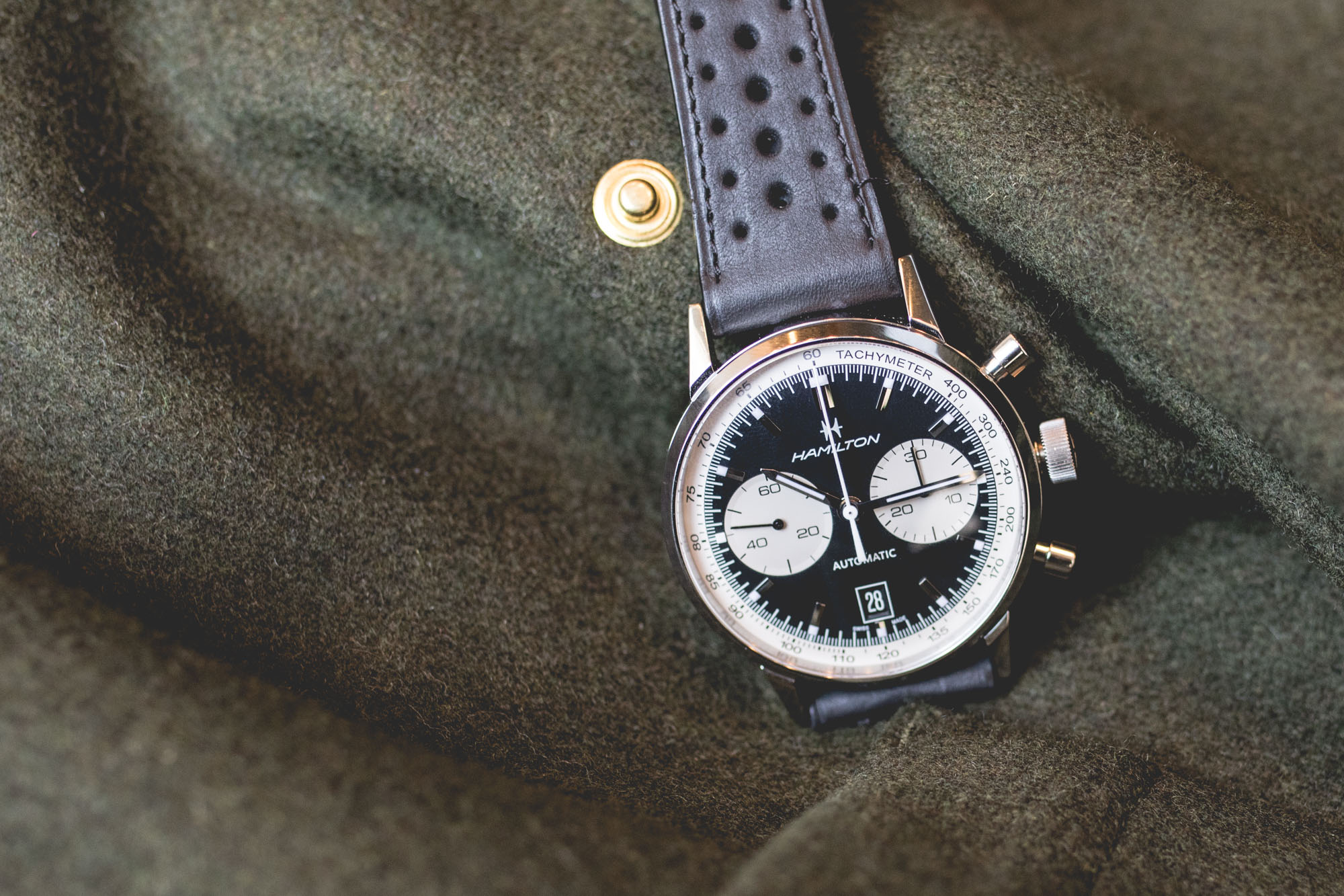 Avec ce Teddy, nous nous sommes laissés tentés par une pièce récente, présentée lors de ce dernier Baselworld, à savoir le chronographe Hamilton Intra-Matic. Une pièce assez sport, dans la catégorie « Néo-Vintage » qui correspond assez je trouve avec une veste sportive dans l’âme, tout en étant pas moins élégante.