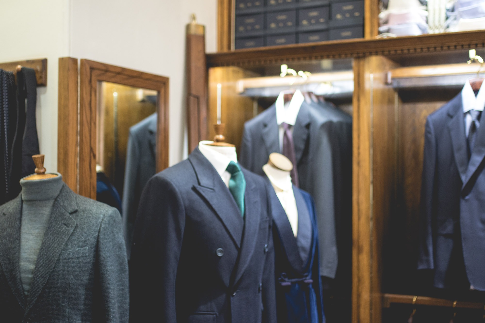 Vous rentrez chez Huntsman, et c’est une cheminée imposante qui vous fait face, entourée de deux vigoureux trophées de chasse. Accueillant. Très accueillant. Le magasin est construit tout en longueur, avec une première partie, en face de l’imposante cheminée, où les clients peuvent ‘chit-chat’ avec un vendeur ou un tailleur pour qu’il réalise leur costume. La deuxième partie est constituée du prêt-à-porter, et la troisième partie, enfin, passe aux choses sérieuses.