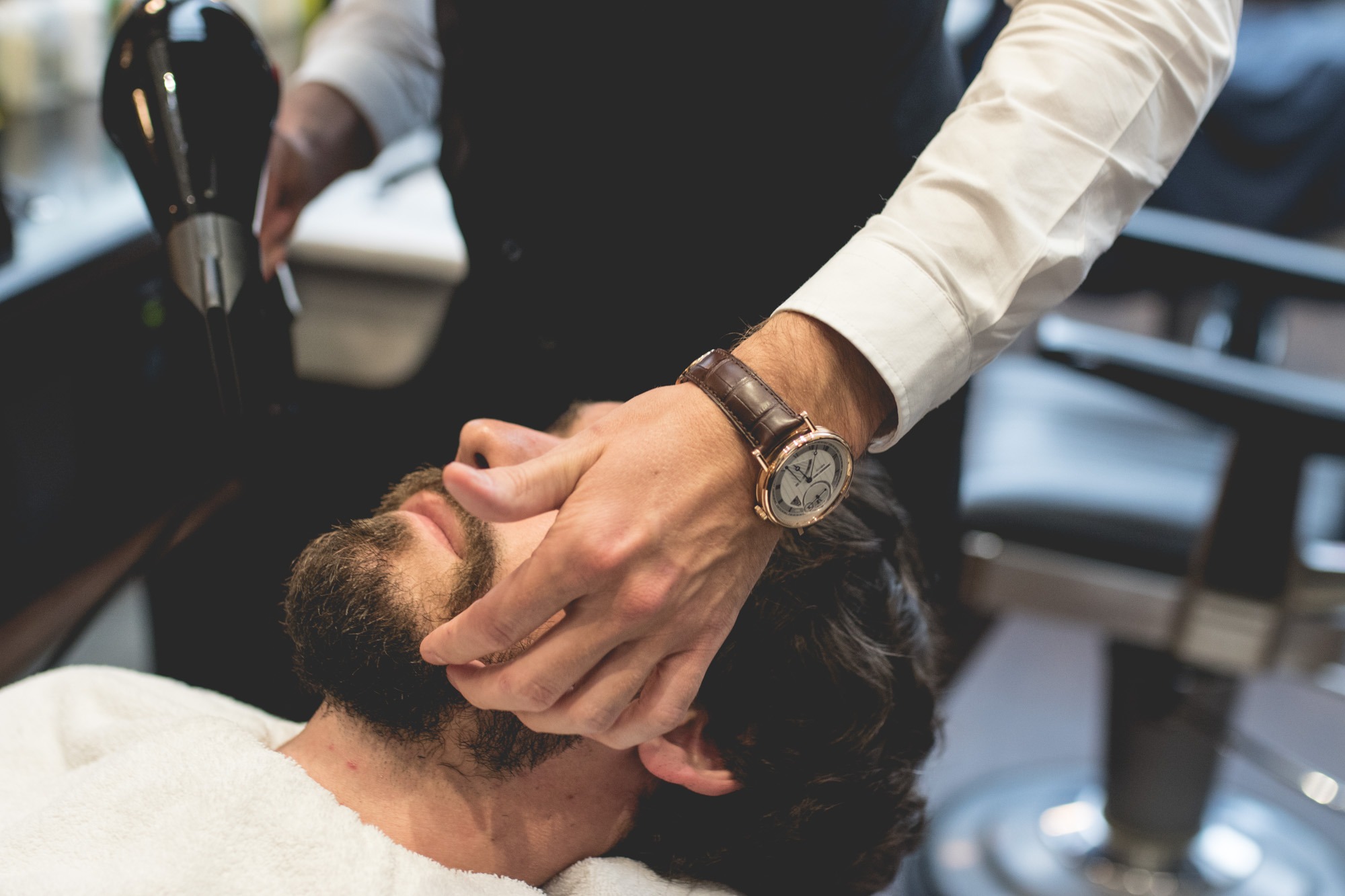 C’est Davis, revenu d’Australie pour travailler au service de Truefitt&Hill, qui s’occupe de moi. J’ai demandé un ‘beard trimming’ traditionnel. Je m’assoit sur un fauteuil, presque allongé et tête en arrière. Davis humidifie une serviette, avant de la réchauffer. Elle est fumante, et il l’imbibe d’une eau de cologne très fraiche dont Truefitt s’est fait la spécialité depuis des années. Il m’applique la serviette chaude sur le visage selon une disposition très particulière où seul mon nez dépasse. La sensation est on ne peut plus agréable, ayant l’impression d’être au bout du monde immergé dans des thermes parfumées de citron. Il sort ensuite sa lame de rasoir et fait tout son art, avant de recommencer le rituel de la serviette chaude.
