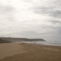 Nous sommes face à la mer. Pas une personne, et toujours ce côté très sauvage et coloré que l’on trouve de ce côté du Finistère. Seul le bruit des gros rouleaux se fait entendre. Nous sommes sur la plage de la Palue, réputée pour son spot de surf.