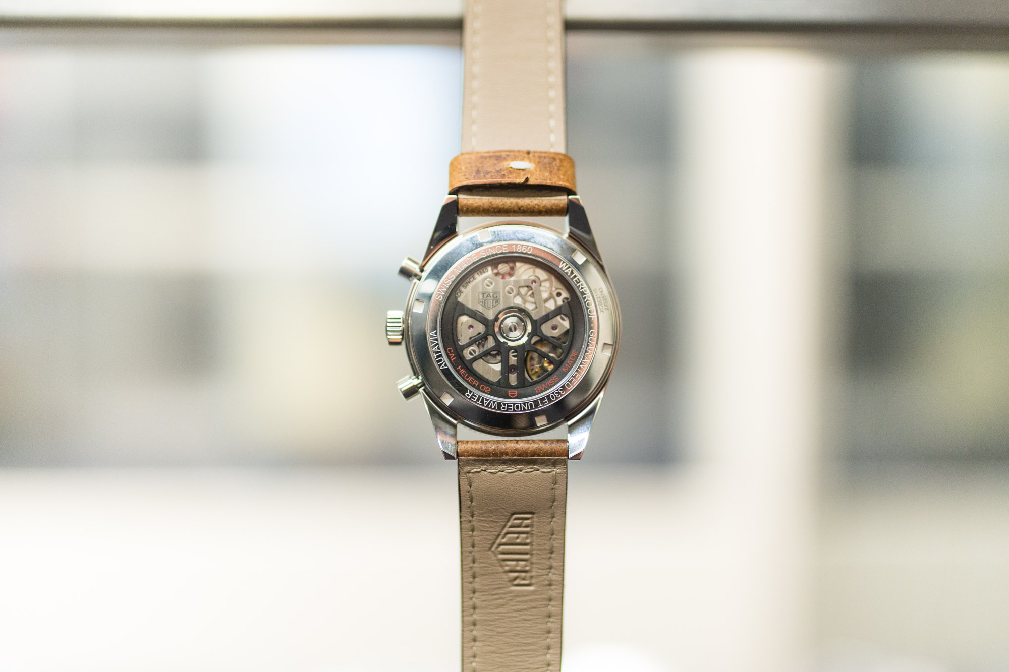 Pour faire battre le coeur de cette montre anniversaire, toujours ce même Calibre Heuer 02, délivrant une belle réserve de marche de 80 heures, et bien sûr accompagné de son chronographe roue à colonnes. Un beau développement interne.
