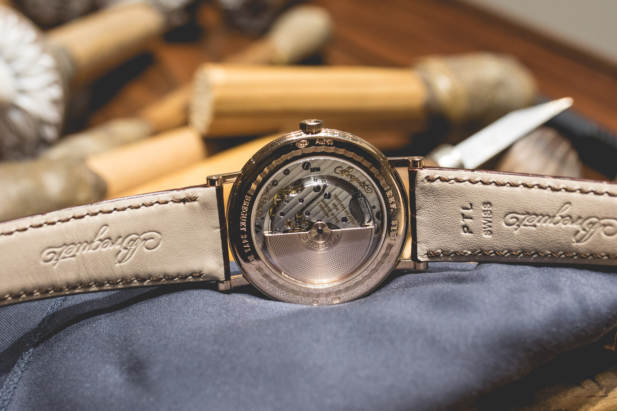 Elle incorpore du silicium dans son spiral et son ancre et son guilloché « Clous de paris » rend le regard amoureux. Et ça nous a rappelé quelques bons souvenirs de ce délicieux Breguet Classic Tour à Londres en compagnie de Breguet.