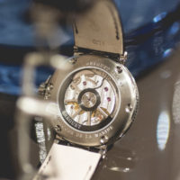 On trouve à l’intérieur de ces montres le mouvement maison 777A automatique délivrant 55 heures de réserve de marche. Et que l’on peut apercevoir au dos. Il intègre un spiral en silicium.