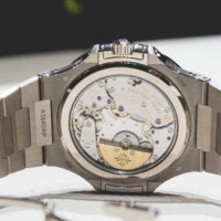 La première chose qui surprend quand l’on prend la montre en main est sa finesse. Elle pèse son poids d’or gris, certes, mais la tranche ne fait que 8,42mm d’épaisseur. La célèbre 5711 est à 8,3mm, ce qui permet aisément de comparer. Quand on y ajoute le diamètre Nautilus de 40mm et la douceur de ses finitions, l’équilibre complication/présence est parfaitement respecté.