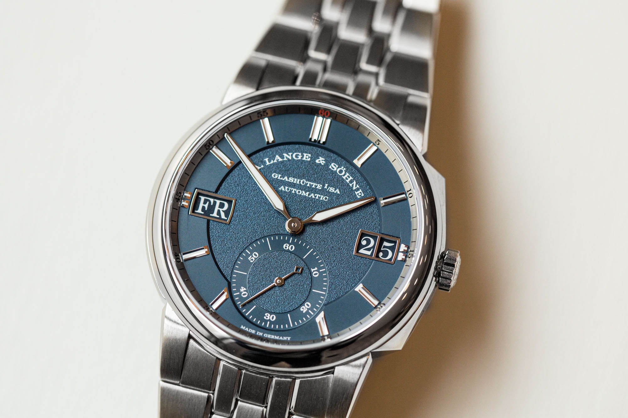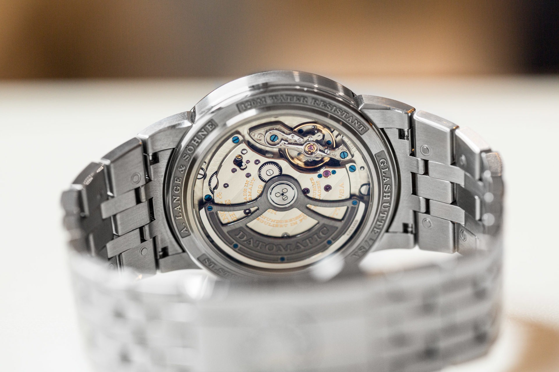 Le grand invité qui fait parler de lui, c’est l’acier. Techniquement pas la première fois qu’il apparait sur une Lange, souvenez-vous la 1815 « Homage to Walter Lange » et sa seconde sautante venaient dans un boitier en acier. Une pièce unique vendue aux enchères en 2017.