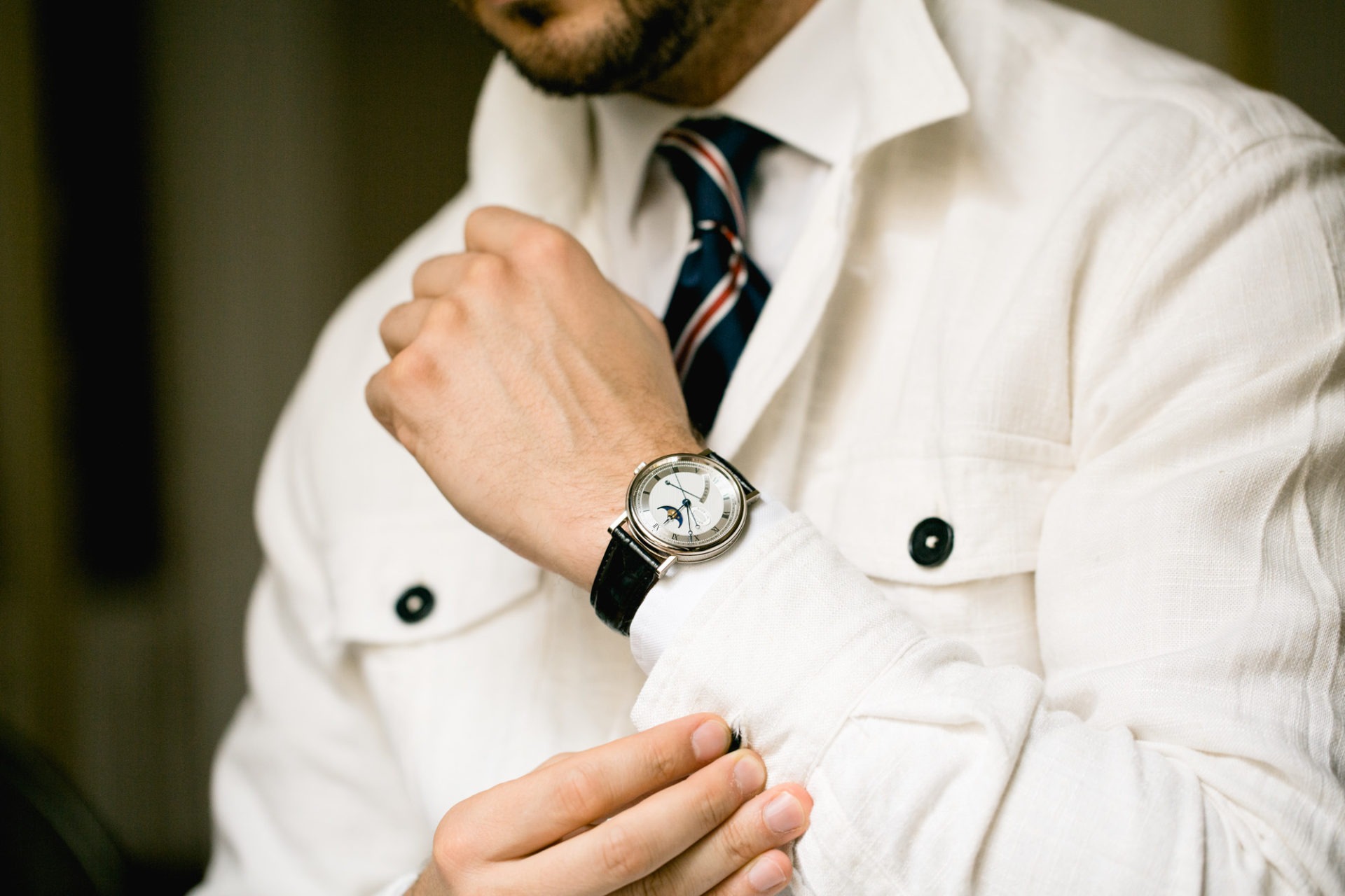 Au premier regard il n’y a aucun doute, il s’agit bien d’une montre Breguet. Les aiguilles à « pomme évidée » bleues ne trompent pas, tout comme le boitier d’ailleurs. Ce boitier, ici en or blanc 18 carats, est doté de légères cannelures et de cornes fines et droites familières à Breguet et à sa gamme Classique.