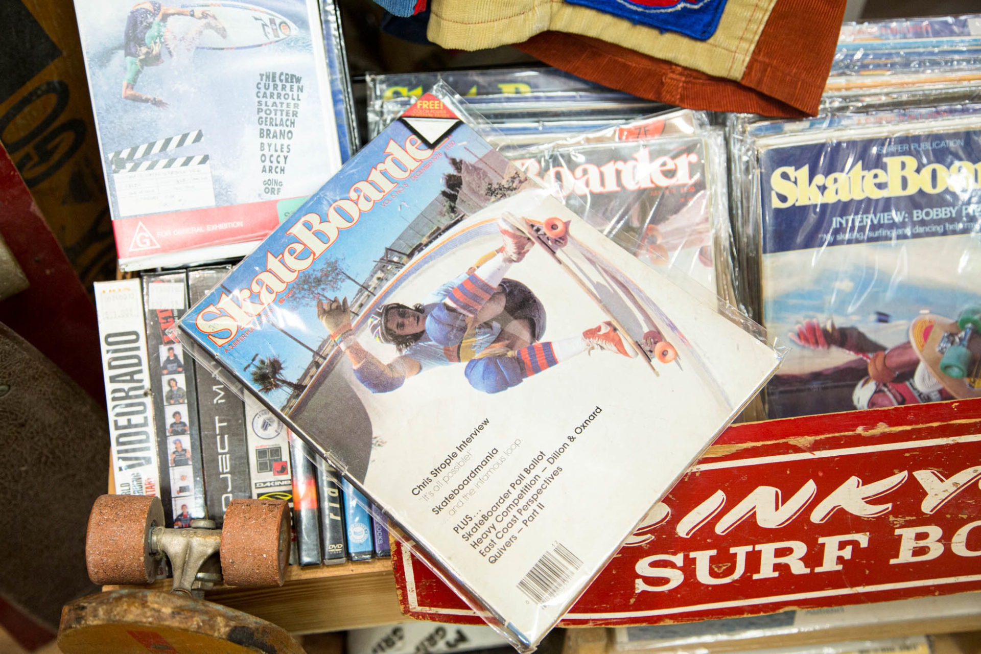 Son nom ? Pacific Coast Vintage, situé au 44 rue Poissonnière à Paris. Une boutique ouverte depuis plusieurs années par Jacques, cinquantenaire reconverti en Roi de France du skate et surf vintage. Nous avons passé une paire d’heures à échanger sur le sujet – tels deux gamins face à un des murs de friandises de toutes sortes – pour vous initier à un sujet qui, nous sommes certains, saura toucher certaines cordes sensibles.