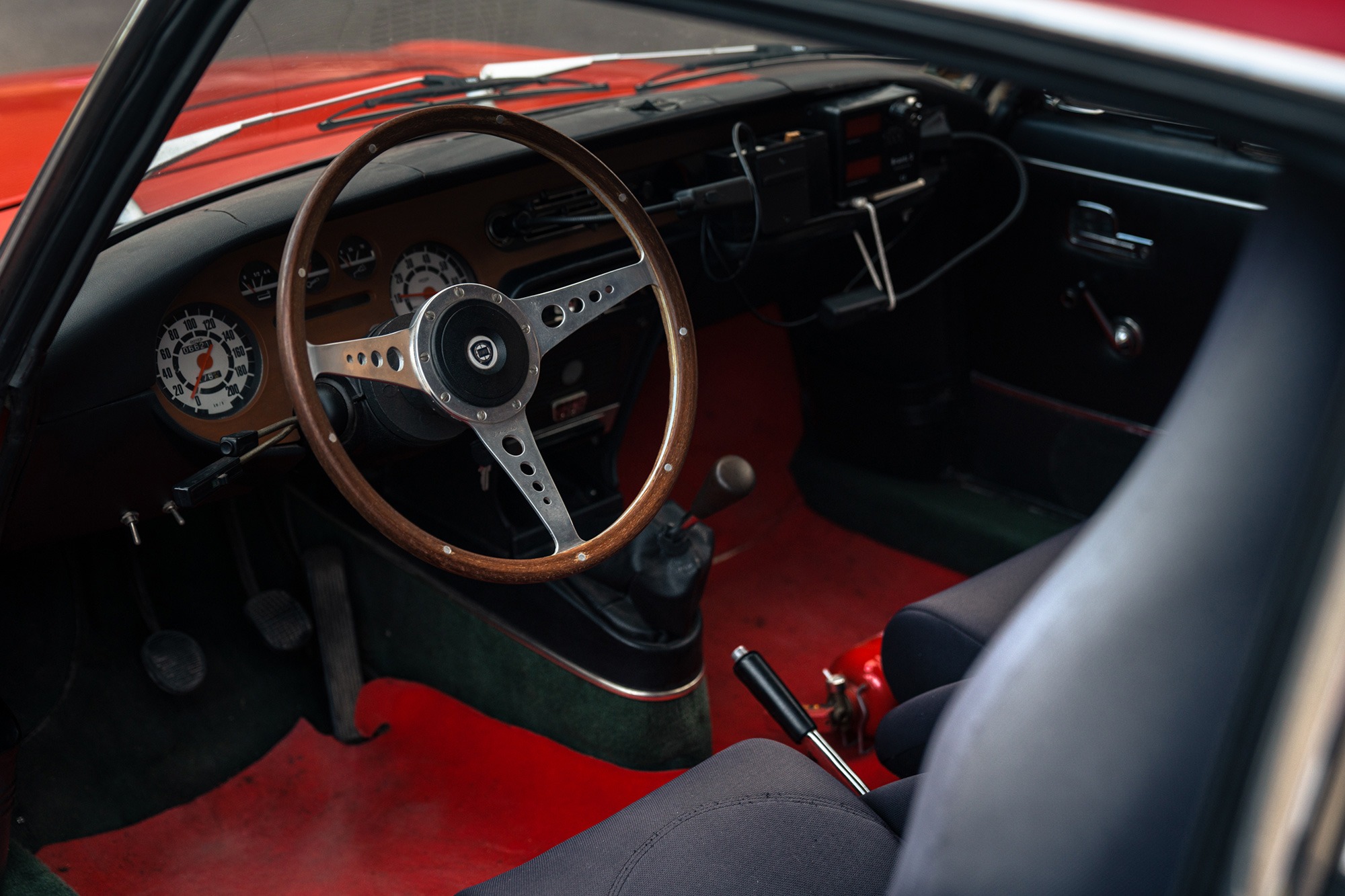 C’est le cas de l’exemplaire de 1975 présenté ici. Une voiture citadine à l’origine, qui a été préparée pour le sport avec des harnais trois points, l’extincteur réglementaire, les feux longue portée, le lecteur de carte, les sièges baquets et les autres équipements requis pour l’homologation et l’éligibilité dans les épreuves réglementées. Parfaitement entretenue par le garage Asphalt Classics, elle n’a cessé de courir avec succès depuis une quinzaine d’années.