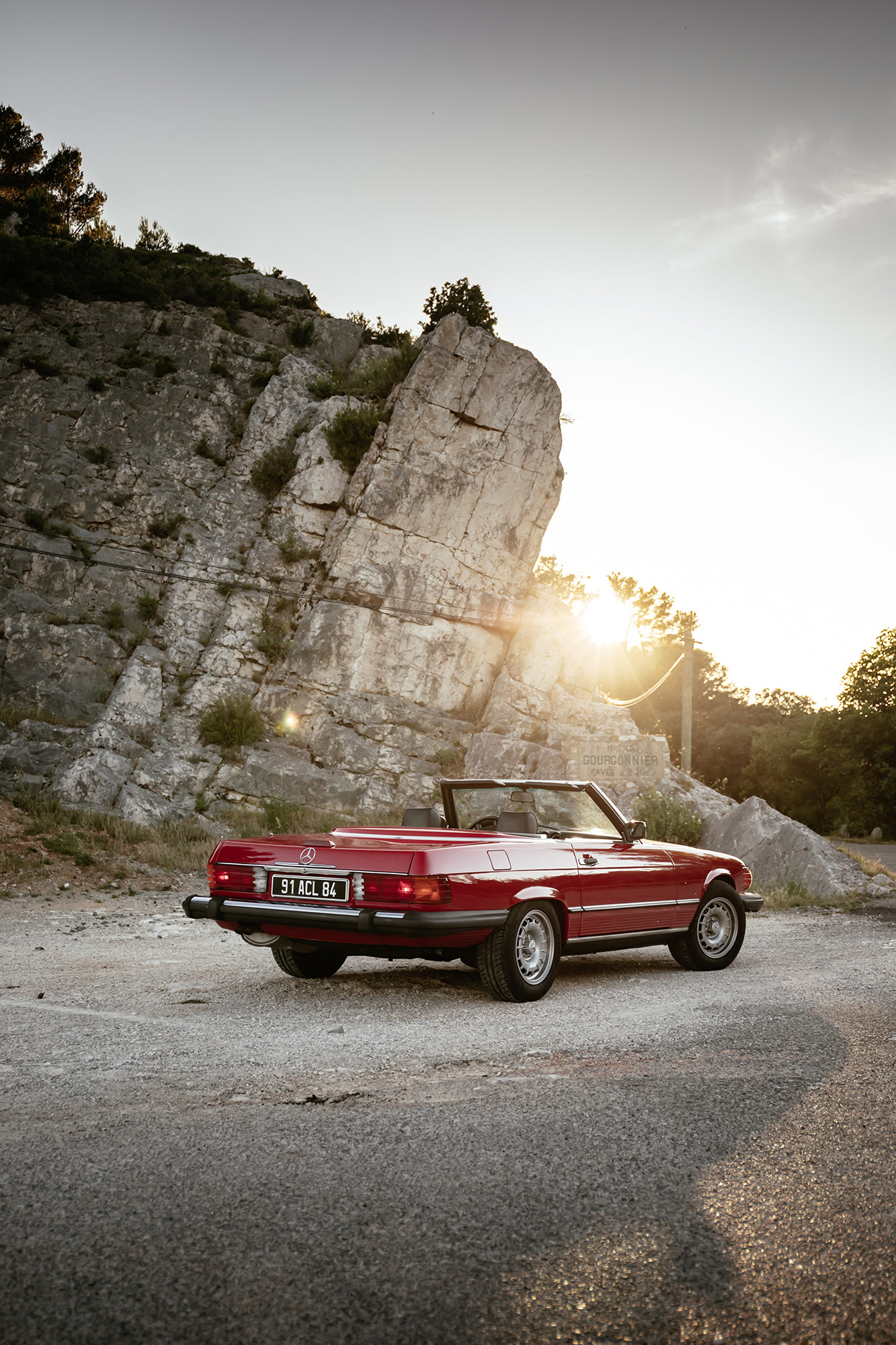 Dédiée aux marchés américains principalement, la version 560SL du cabriolet Mercedes-Benz type R107 été plébiscitée par les stars des années 80. Il est temps de tutoyer l’étoile.