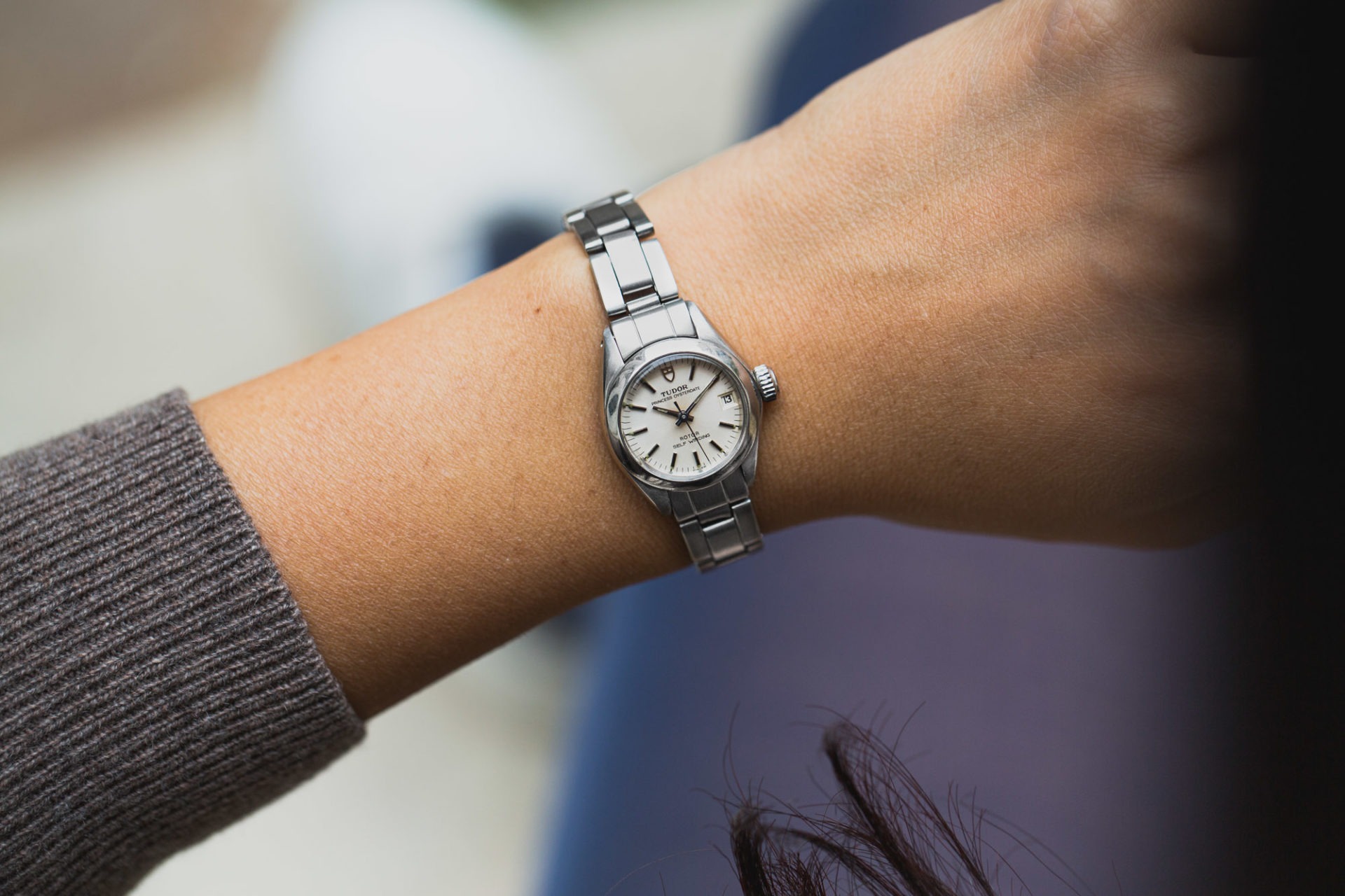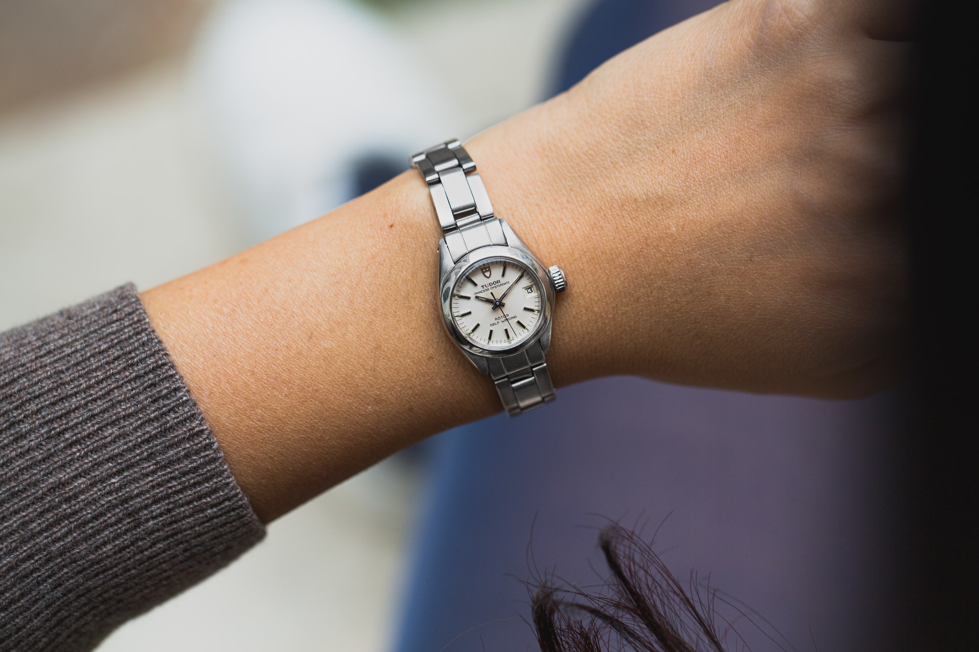 Si vous appréciez le charme des montres Rolex & Tudor de ces années, vous trouverez forcément cette Tudor pour femme complètement dingue. On y retrouve tout ce qui nous plait dans la montre sportive et chic en acier : le boitier Oyster, le fond et la couronne vissés agrémentés de la couronne gravée. Sans parler du bracelet acier Oyster aux mailles pliées.