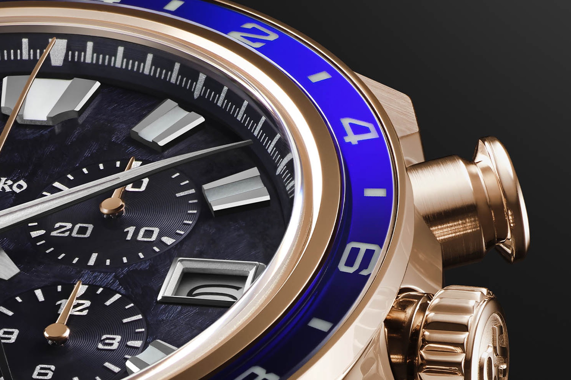 On retrouve donc la couleur bleue indigo « Katsu-iro » caractéristique de l’armure des combattants japonais et de leur bravoure. Une couleur qui se marie à merveille avec l’or rose de ce boitier aux formes extraordinaires, faisant écho à la puissance et la résistance de ces guerriers, mais aussi au symbole Grand Seiko du lion par son inclinaison intérieure, permettant une assise confortable sur le bracelet (une petite folie en crocodile dont les rainures sont incrustées d’or) ainsi que le motif du cadran reprenant a crinière de cet animal majestueux.