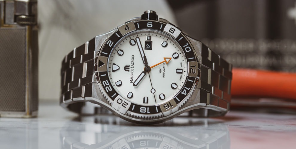 On retrouve ce pourquoi on peut apprécier Maurice Lacroix. A savoir l’histoire de la valeur perçue et des finitions. La lunette et son insert en céramique noire dont les chiffres sont luminescents, un boitier à la finition brossée et aux chanfreins polis, un très léger « step » dans le cadran entre la minuterie et le reste de celui-ci, un bracelet acier aux maillons brossés, polis sur les arrêtes, et une harmonie certaine du cadran.