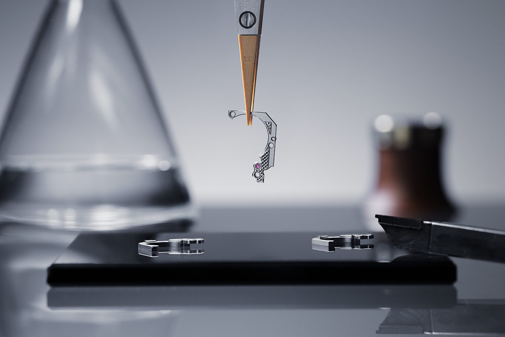 Pour cette nouvelle montre exceptionnelle, qui est incontestablement l’une des révélations horlogères majeures de l’édition 2021 du salon Watches & Wonders, et dont il devrait être réalisé dix exemplaires sur commande (compter 1.620.000 €), les horlogers de la Grande Manufacture ont poussé le curseur à l’extrême. Le calibre 185 ne propose pas moins de onze complications. Dès le premier abord, l’amateur remarque un tourbillon volant, placé de manière inhabituelle à 7 heures, mais aussi la grande date disposée à 5 heures et l’ensemble des indications du calendrier perpétuel. La présence de deux marteaux, visibles en basculant la montre sur sa deuxième face, ne laisse pas indifférent non plus. S’ils ravissent le regard, ils enchantent surtout l’oreille par leurs timbres lorsqu’ils sonnent les heures ou les minutes en alternant des notes aiguës ou graves. La capacité à supprimer les temps morts entre le son de l’heure et celui des minutes, lorsqu’il n’y a pas de répétition des quarts, est un brevet nouveau déposé par la manufacture, comme l’a expliqué de manière détaillé Catherine Rénier, la présidente de Jaeger-LeCoultre. C’est aussi sur cette deuxième face que se présente un autre affichage horaire, grâce à une présentation par heures sautantes et minutes périphériques particulièrement raffiné.