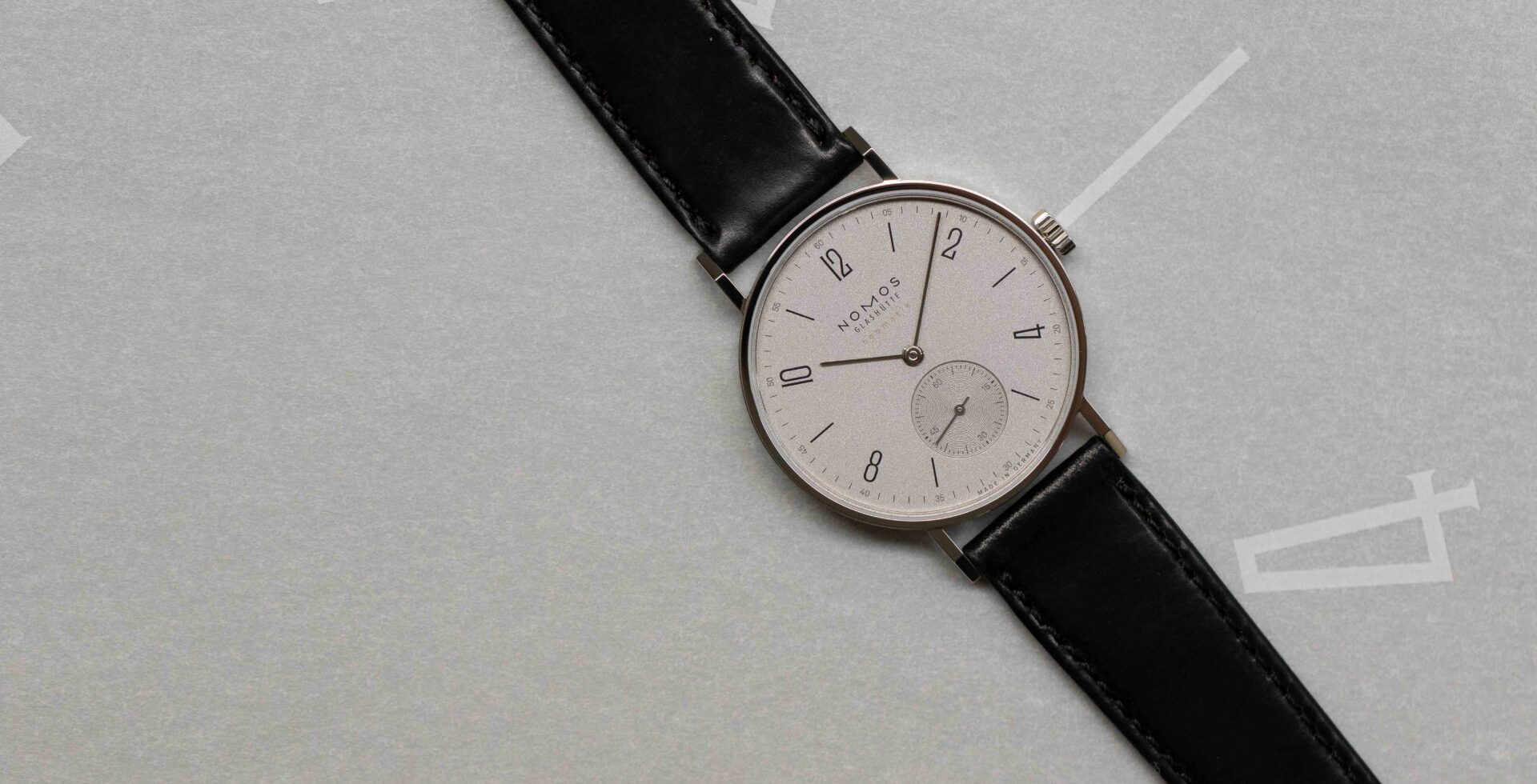 La Nomos Tangente apparait en 1992, en même temps que les montres qui forgeront l’avenir de la marque : Orion, Ludwig et Tetra. En fond, toujours la même idée que la forme doit suivre la fonction. Une association de formes dynamiques et géométriques simples, entre la rondeur simple de la tête de montre, les cornes anguleuses à souhait, la typographie épurée. L’ensemble se résume à des lignes claires et des proportions harmonieuses qui offrent une excellente lisibilité et des dimensions pleines de sens : un diamètre de 35 millimètre et une épaisseur de moins de 7 millimètres.