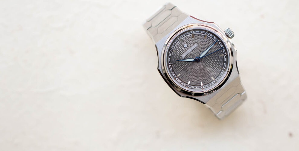 Aujourd’hui, l’aventure se prolonge avec la présentation du deuxième modèle : Perception. Une montre sportive en acier à bracelet intégré qui se démarque par des cadrans guillochés à la main par le meilleur artisan guillocheur de Chine, voir d’Asie. Rien que ça.