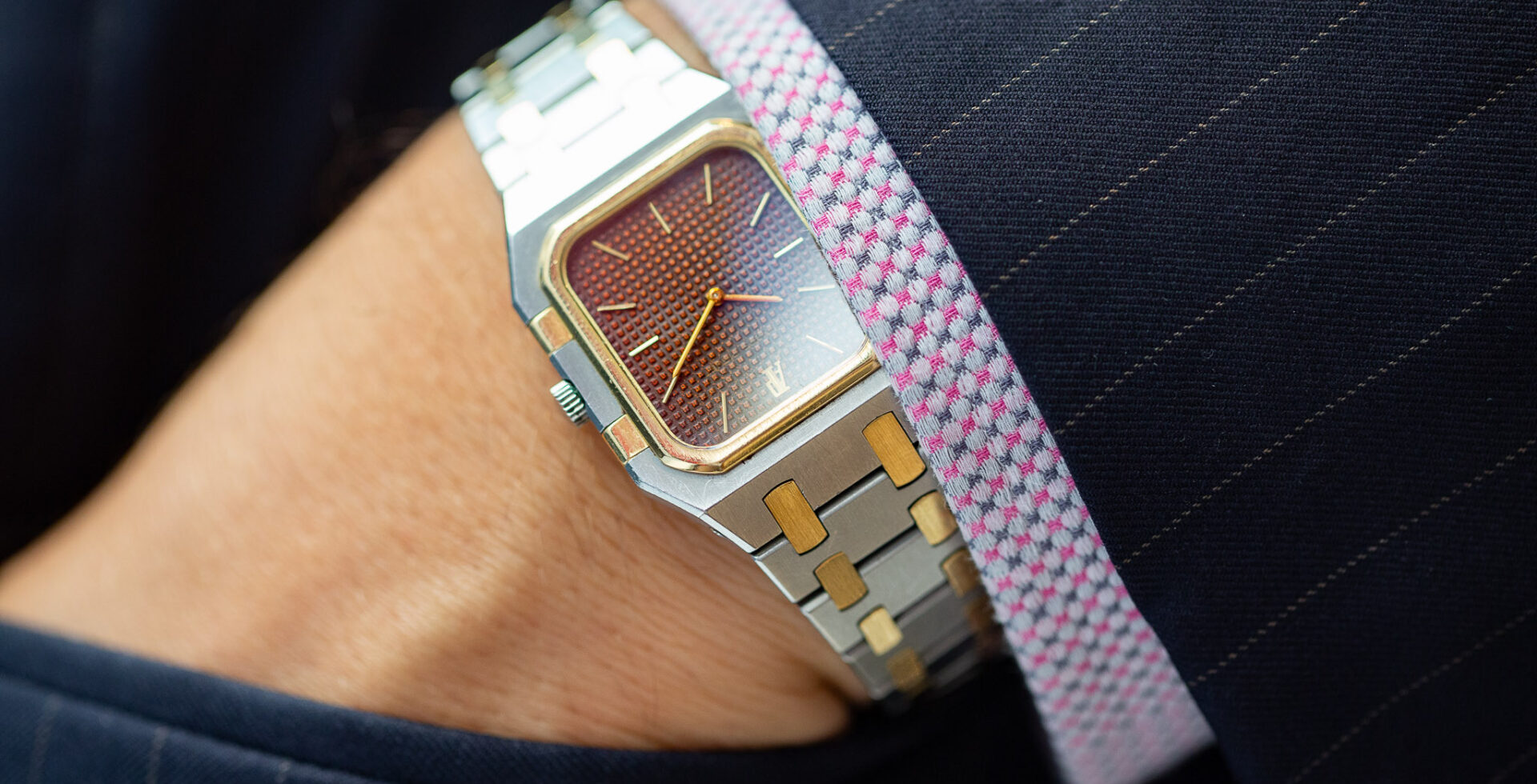 Voici une des pièces les plus originales de la vente. Vous connaissez notre amour pour les références Royal Oak à quartz. Nous vous en parlions lors d’un article sur les références Royal Oak à quartz et dans une vidéo retraçant l’histoire de l’octogone du Brassus.