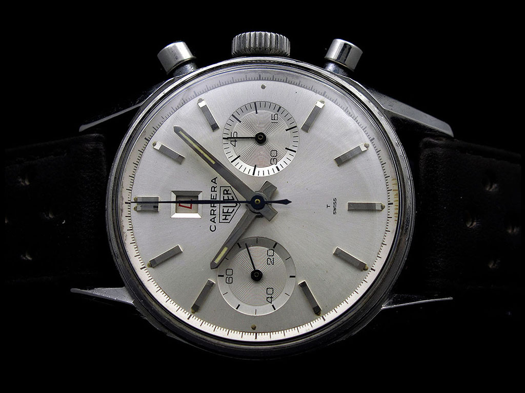 C’est au milieu des années 1960 que la Carrera « 45 » Dato apparait au sein des collections Heuer. L’idée en lançant cette montre est de rendre plus populaires les chronographes suisses à l’étranger et notamment aux États-Unis. Pour cela Heuer utilise le mouvement Landeron 187 puis 189. En effet pour des raisons de coûts ces derniers sont préférés même s’ils ne sont pas aussi raffinés que les Valjoux 72 utilisés sur les premières Carrera. Le Landeron est un bon « tracteur » et officie parfaitement dans cette référence proposée principalement avec deux cadrans, un gris (3147S) et un noir (3147N). À noter que les premières exécutions verront leur fenêtre de date à midi avec petite seconde à neuf heures et la seconde itération la date à neuf heures sans petite seconde.