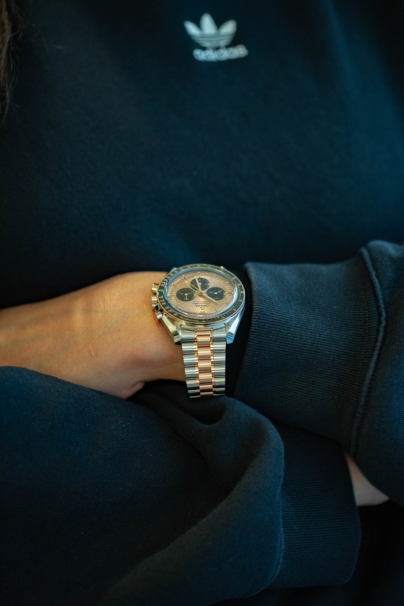 OMEGA SPEEDMASTER, ENTRE OR ET ACIER La Lune, précieuse