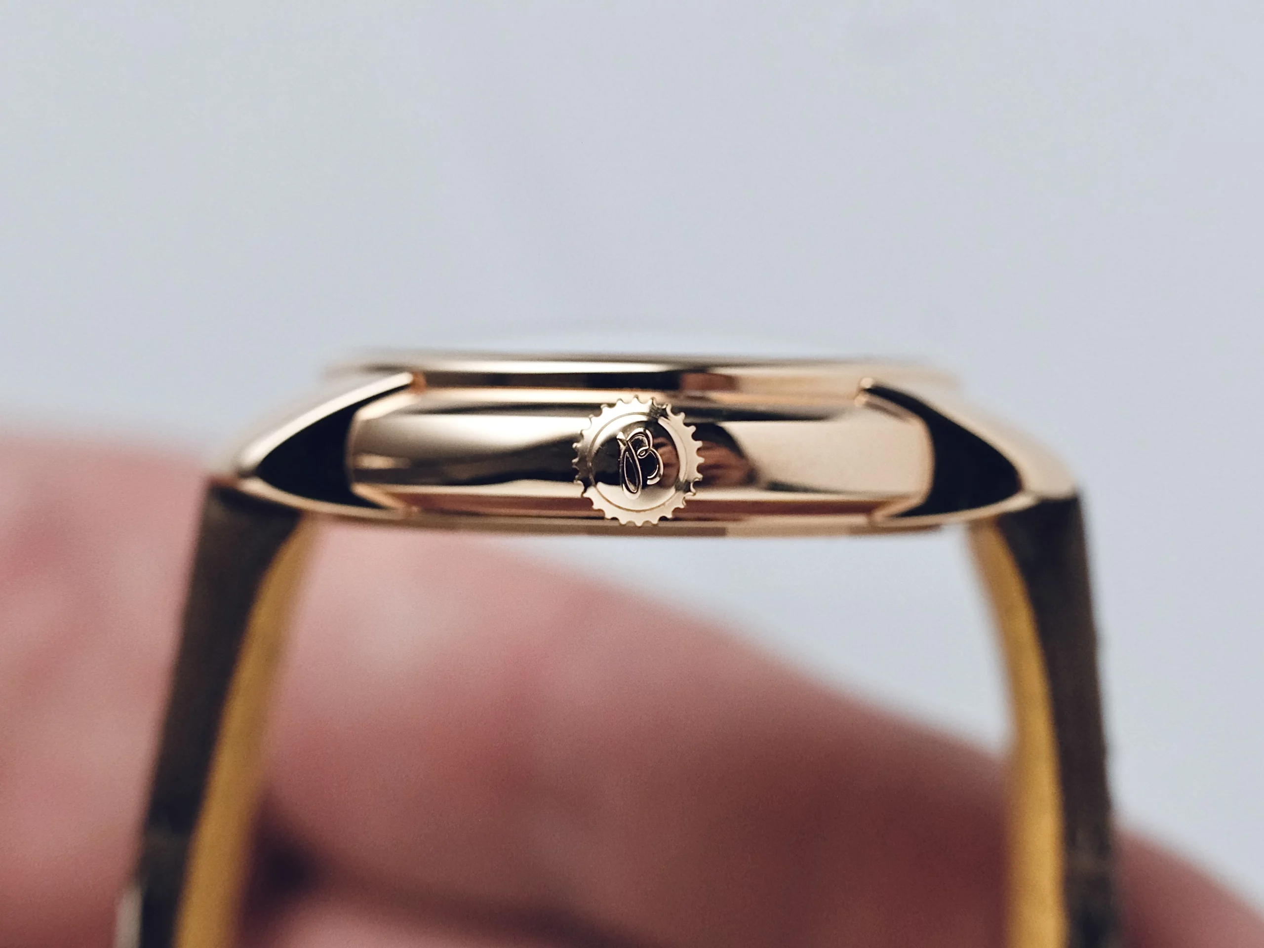 Bien que tous les modèles de la collection Lady Premier 2025 méritent une attention particulière, j’ai pu passer un peu de temps avec la version en or rose et je souhaite donc vous en dire plus à son sujet et m’en servir comme base pour cette critique. Avec cette nouvelle collection, Breitling avait pour intention de créer une montre pleine de caractère, non seulement par ses proportions et ses matériaux, mais aussi par son design. Le premier élément, et le plus important, est le boîtier, qui présente une esthétique presque art déco, avec des cornes angulaires proéminentes qui semblent soudées au boîtier, par ailleurs parfaitement circulaire et rond. Les cornes jaillissent donc du boîtier, tandis que ce dernier s’incurve tout autour pour englober une petite couronne en forme de demi-oignon à trois heures. Le boîtier est donc relativement petit, mais il impose une forte présence au poignet tout en étant très élégant.