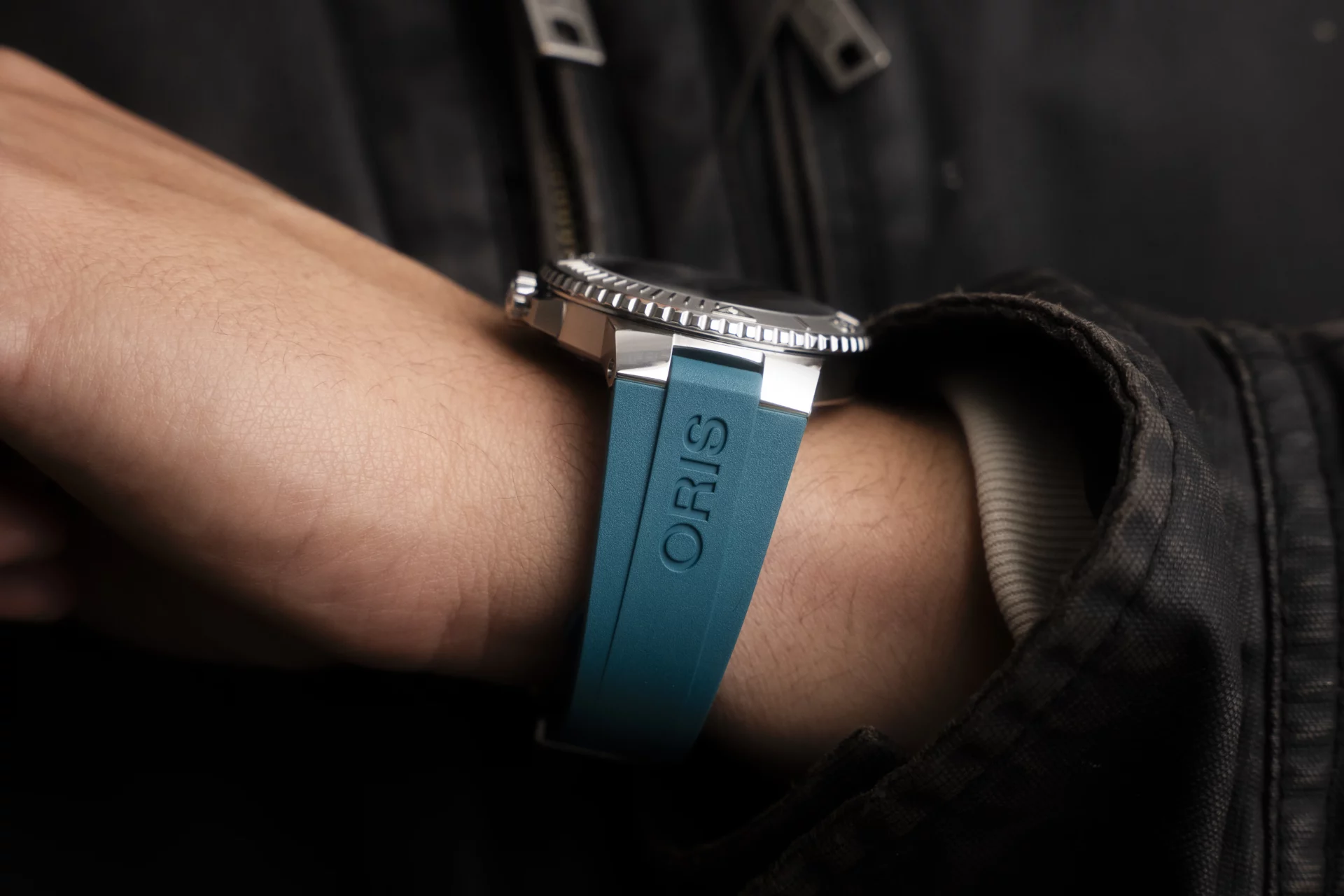 Suivant la même logique, l’Oris Aquis New York Harbor Limited Edition II présente un boîtier de 43,50 mm de diamètre, 51 mm de corne à corne et 13,10 mm d’épaisseur, avec une étanchéité à 300 mètres (couronne et fond vissés), ce qui correspond à un niveau d’étanchéité pour les professionnel. De plus, un verre saphir bombé avec plusieurs couches de revêtement antireflet interne, de généreuses quantités de SuperLuminova sur les aiguilles et les index, une lunette unidirectionnelle en acier à 120 crans et un calibre Oris 733 battant à 4 Hz et offrant une réserve de marche de 41 heures. Cette édition limitée est également livrée avec un bracelet en acier à trois maillons équipé d’un fermoir déployant à double poussoir, ainsi qu’un bracelet en caoutchouc FKM de couleur assortie (au cadran) également équipé d’un fermoir déployant. Cette édition limitée est donc une montre à part entière, ce qui rend les collaborations entre Oris et le Billion Oyster Project particulièrement intéressantes.