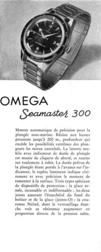 Si la collection Seamaster apparait à la fin des années 1940, elle n’est au départ que le penchant civil des montres des militaires de la Seconde Guerre mondiale, et serviront d’ailleurs encore aux militaires. Il faudra encore attendre quelques années avant de voir apparaître les montres de plongée Seamaster, et en particulier l’année 1957 ou la trilogie Speedmaster, Railmaster et Seamaster 300 fait son apparition. La fenêtre qui s’est alors ouverte a grandi et ne s’est jamais fermée. Les liens d’Omega avec les grands noms et les grandes entreprises de la plongée ont tendance à être oubliés, mais il serait un grand tort de ne pas citer le capitaine Cousteau et la COMEX pour l’utilisation de ces montres, jusqu’à la Seamaster 600 dite « PloProf » et son visage caractéristique.